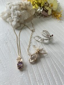 制作していくうちにわくわく楽しく夢中で、気付けば外は真っ暗になるほど、今は、ジュエリー創りに夢中だそうです。
